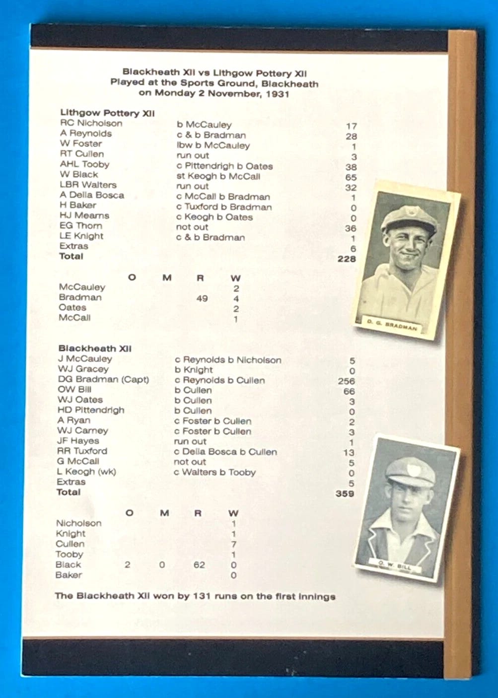 It was 2nd November 1931 - Blackheath vs Lithgow Pottery, played at Blackheath Oval in the Blue Mountains, west of Sydney. My pop, Alf Reynolds, was playing for Lithgow and the hosts had invited a couple of players from the NSW State team to play for them.